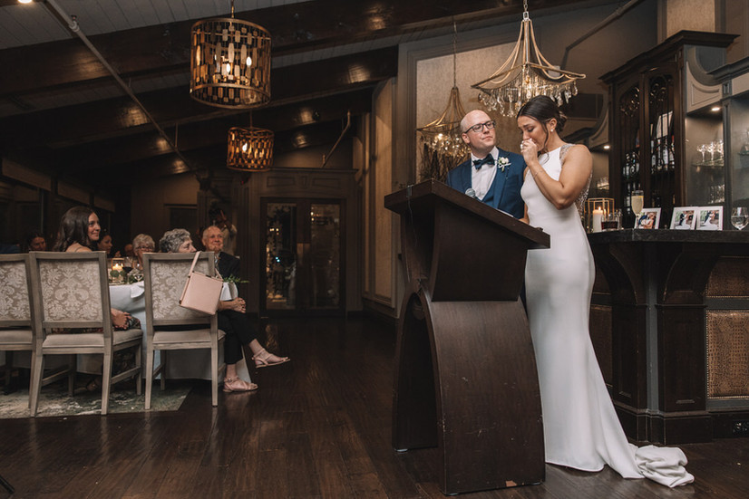 The reception at Ancaster Mill was nothing short of a wild celebration, a fitting crescendo to Justin and Kim's magical day. The wedding party kicked things off with entrance dances that set the tone for the lively festivities. As the night unfolded, the air buzzed with excitement, and the couple, floating on a cloud of joy, reveled in every moment. Heartfelt toasts and emotional dances between the bride and her dad, as well as the groom with his mom, added a touch of sentimentality to the revelry. But as the night wore on, the celebration kicked into high gear, evolving into a wild and crazy party that had everyone on their feet. Laughter, dancing, and unbridled joy filled the air, creating memories that would linger long after the final notes of music faded away. It was a reception for the books, a testament to the love, happiness, and sheer fun that defined Justin and Kim's extraordinary wedding day.